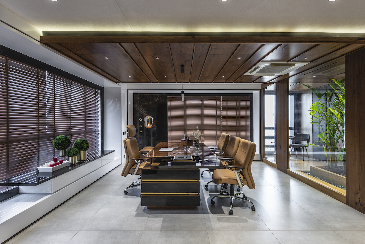 Comfort, smart space-planning and functional luxury are the hallmarks of this Ahmedabad office designed by Mulev Associates.