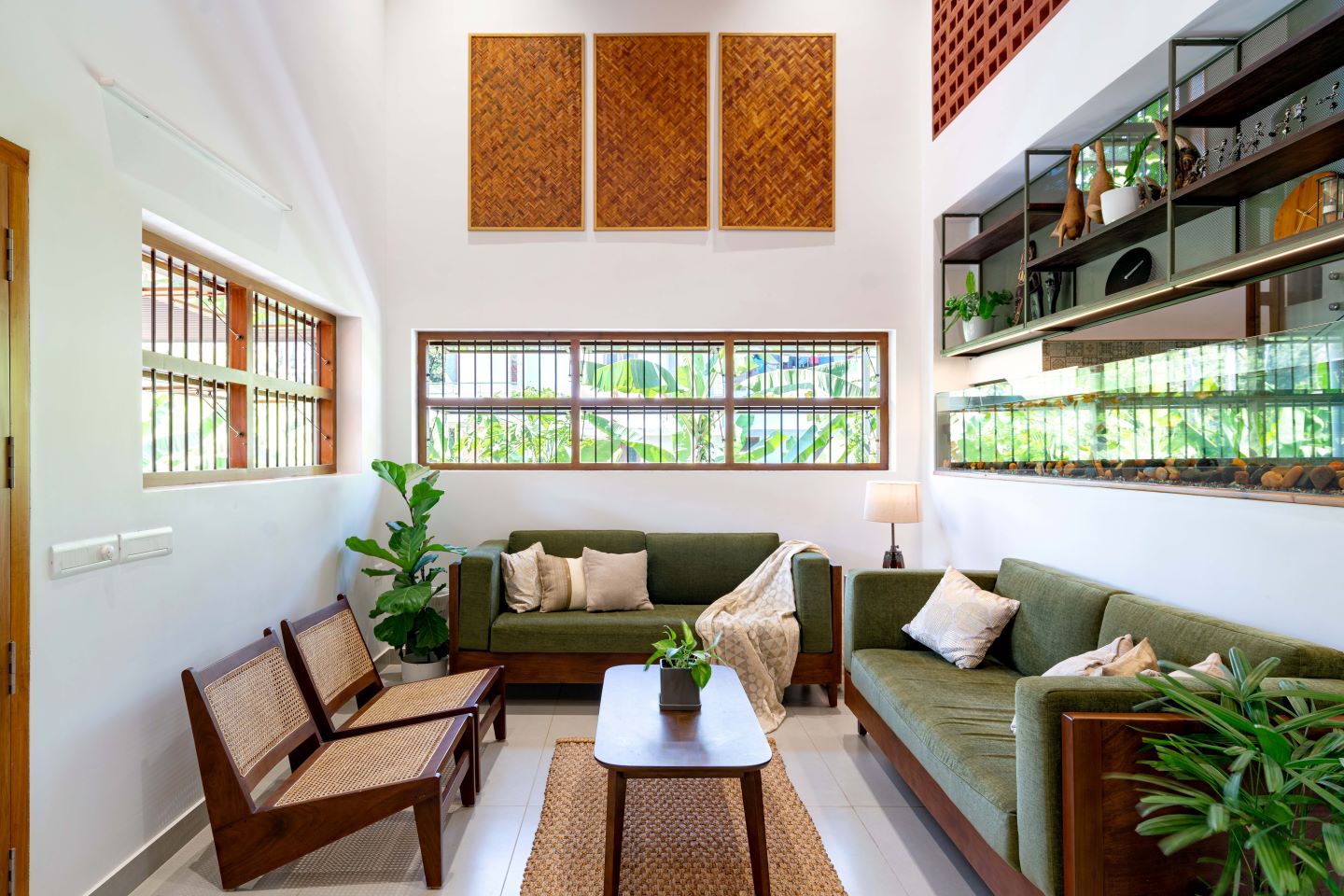 The House of Earthy Hues in Aluva blends in with the adjoining lush green paddy fields, and stands out with a modern facade. Urbane Ivy’s design for this impressive eco-conscious home is in perfect harmony with nature.