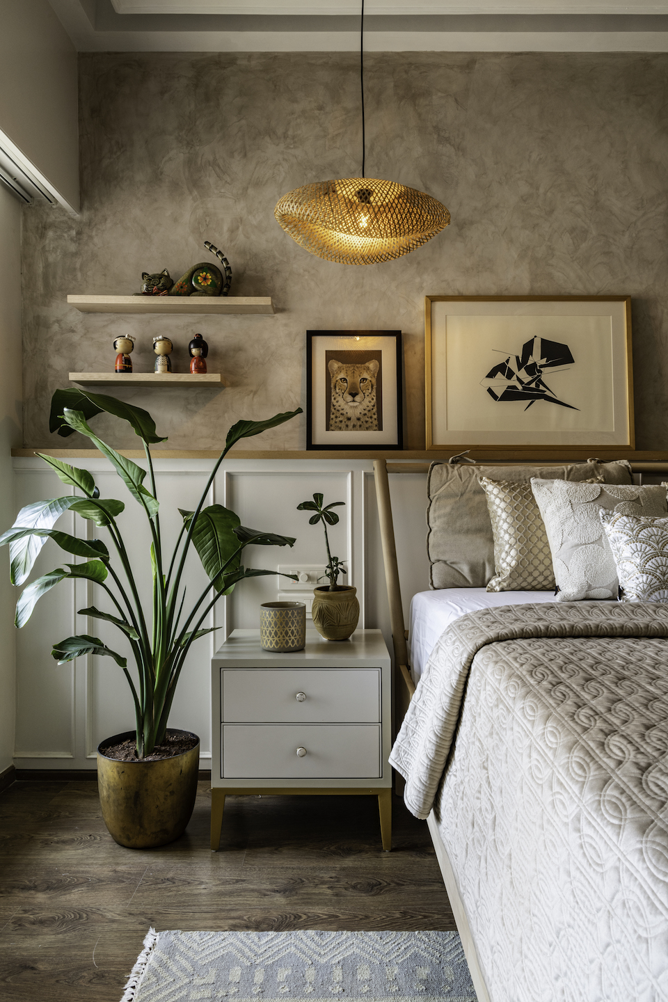 The re-allocation of spaces in this 4BHK due to the need of vastu compliancy and minimalist decor, was one of the major components of the overall design. Post much deliberation, Ankita and Neha settled on modern Victorian as the theme for the home. The luxurious light fittings and the use of moulding laid the path for the Victorian portrayal, while the modern thread was woven in by immersing the home in a colour palette primarily consisting of earthy tones and nude shades.