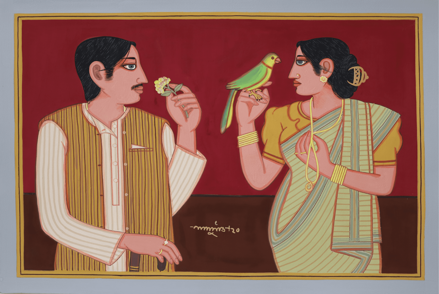 Opening today, Masters will be on display online on Terrain.art until 31st July 2021. The exhibition will be showcasing a careful selection of 27 recent paintings by Lalu Prasad Shaw. Shaw is the first Indian modern artist to showcase paintings with registered non-fungible tokens. NFTs, short for non-fungible tokens, are unique digital assets that can be used as individual identifiers for physical assets on a blockchain, allowing for authenticated ownership and facilitating a transparent and tamper-proof transfer of digital ownership each time the works are resold in an effort to protect the artist’s future legacy.