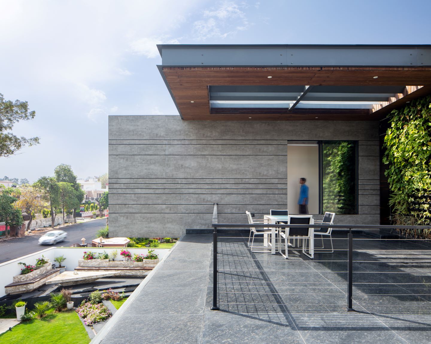 “The design also lays emphasis on responsible living through its layout, the use of passive cooling techniques and by drawing energy from renewable resources. Metaphorically, the house is an oxymoron, serene and cool, with minimalistic decors, yet simultaneously, adventurous in its design approach,” explain the architects.