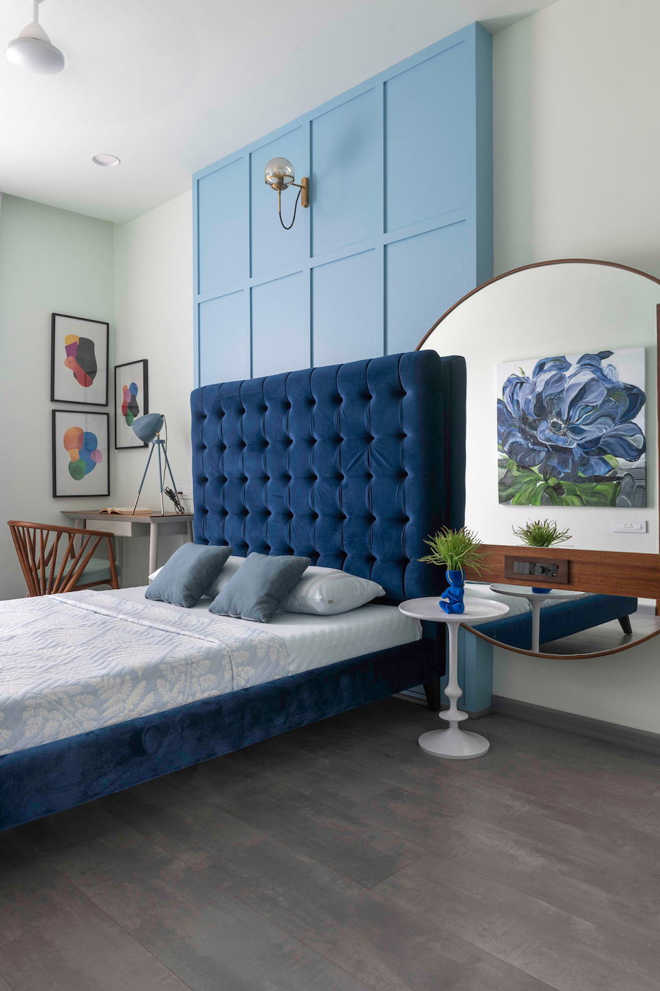 While the two guest bedrooms, with hues of mint green and celestial blue respectively, create their own minimalistic havens, their aesthetics ties up with the overall home essence.