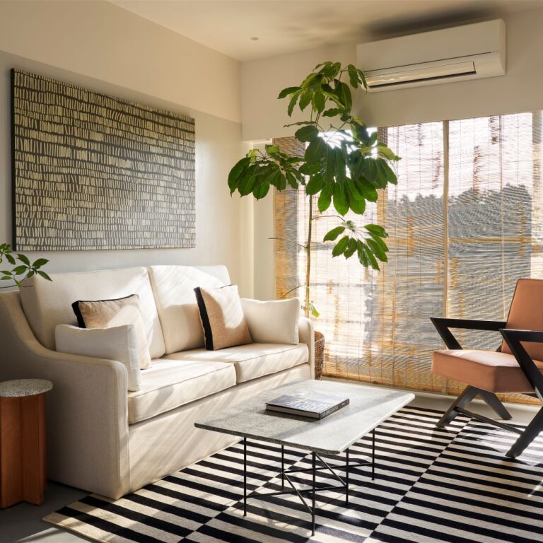 SML Architects design a contemporary and warm home with bespoke furniture and handpicked art and accessories for a family of four in Mumbai.