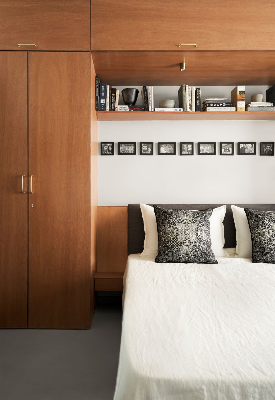 When Mahek first visited the site he noticed beam drops to be of the same depth throughout the home. These beams were coloured in white, and the same white then ‘folds’ back on the ceiling. By doing this the way one perceives the space or volumes is very different. The remainder of the walls were then given a shade of light grey throughout the apartment. This was the architect’s first step in unifying the home. This uniform beam drop throughout the home, and the way the colours were split based on the drop on the walls and ceiling, is why this project is named the Datum House — as it forms a datum (level) at the beam level.