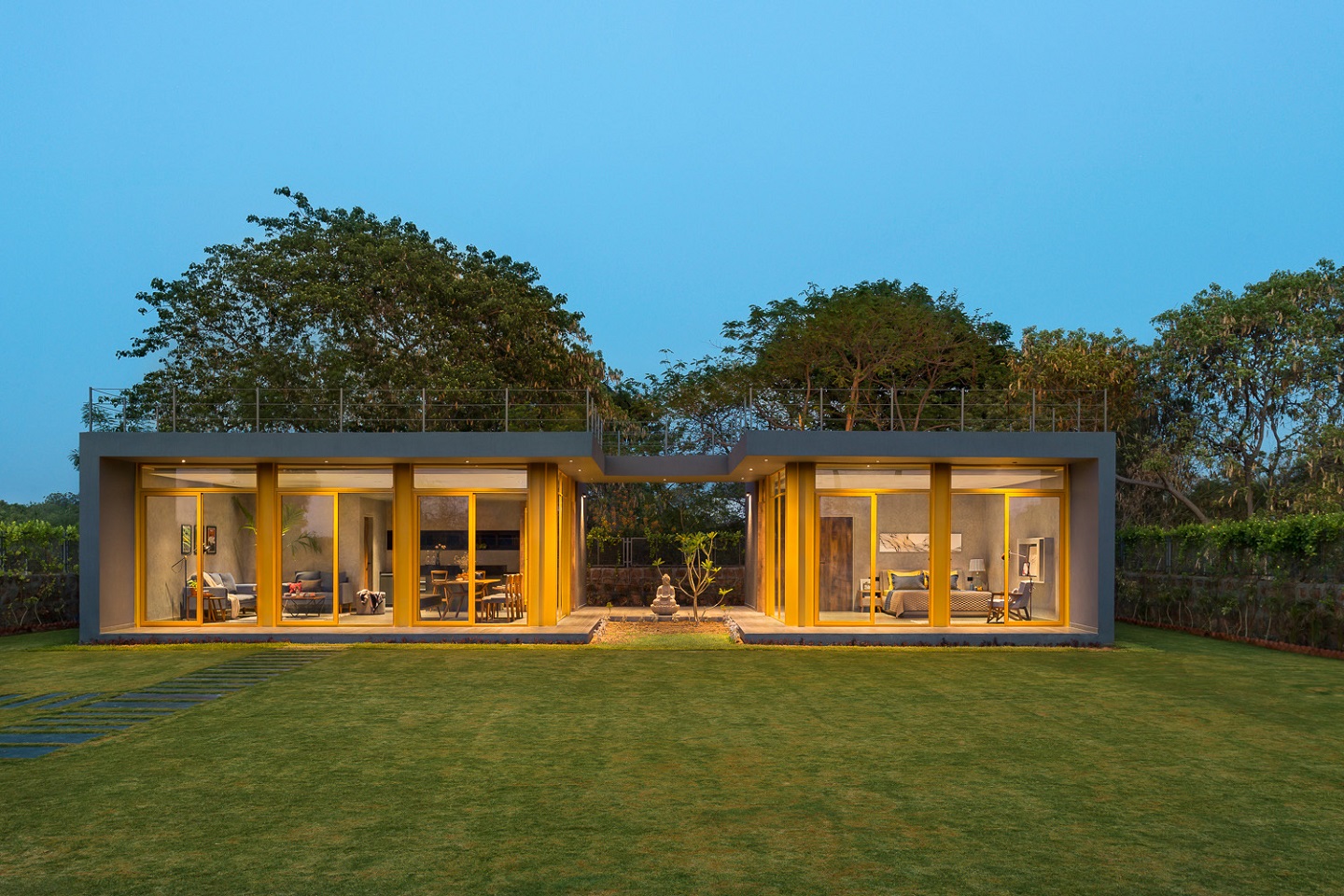 A five-piece, cement-finished bespoke creation by Shreyas Patil Architects.The Business Centrum Sales Pavilion designed by Playball Studio in Rajkot.The Ancestral House at Meta designed by D’WELL.