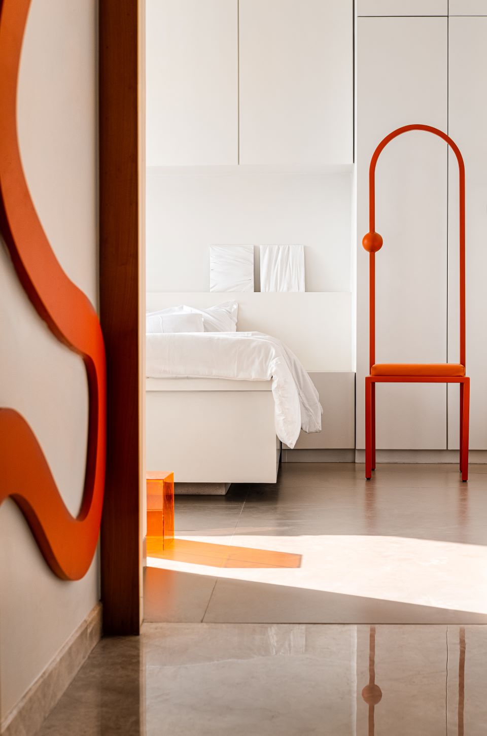 The perks of reaching the Centrum Clubhouse — designed by Abin Design Studio — at six in the morning included this gorgeous orange light that completely transformed the interiors.Shot during the construction phase, this image — of Samira Rathod Design Atelier’s under construction project, One Tree Hill — for me perfectly represents the relationship that Samira construed between the granite monolith and the tree.It was especially tricky to photograph details in this residence, V-House designed by MOAD, in which the walls are not parallel or perpendicular to each other. I feel like this composition captured that complexity well.