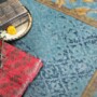 Meera is a hand-knotted collection which derives inspiration from gendas, the flowers of the soul. These rugs use a combination of the finest New Zealand wool and viscose yarn. Upasana is a hand-knotted range which displays patterns in beautiful jewel tones which are synonymous with jharokhas bordering temples and places of worship. Aman is hand-knotted and contains the fluid beauty of floral patterns in miniature painting, representative of the religious heritage of India. Lastly, Seher hand-knotted collection has concentric circular motifs inspired by the elements of nature and the feeling of the first rays of the sun in a bright blue sky.