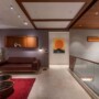 Spread across three floor, the 2,370-square-foot house consists of a garden area, formal and informal living, dining, an open kitchen, four bedrooms and a terrace for family get-togethers. The house has seamlessness between the indoor and outdoor areas, creating a beautiful harmony and a sense of peaceful living in the living quarters. Landscaped greens convince the family members to visit the outdoor space for their morning chai and yoga sessions. Separate entries for guests and family members help in creating segregation between public and private spaces. The guests walk through the landscaped garden with subtropical plants to approach the living room; while the private entrance of the house opens into the dining space, where a teak wood ceiling guides the family to their private spaces.