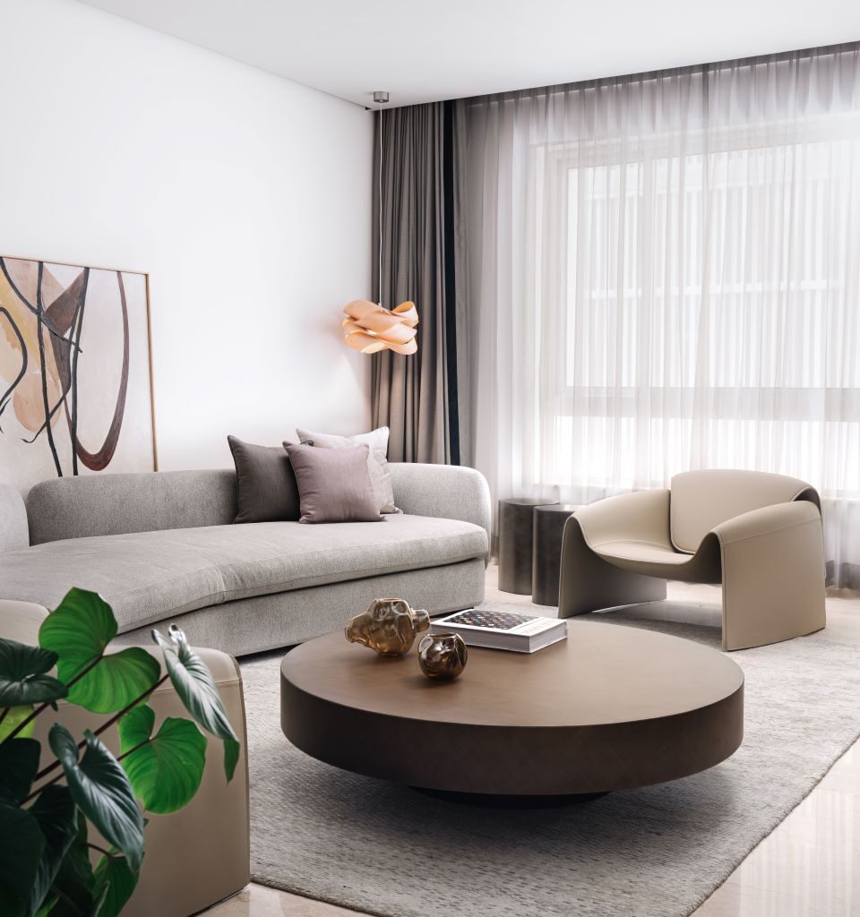 The apartment is largely monotone with punctuations of brilliant colour combined with a play of distinct materiality that stands out while unifying a common theme. Further, all the furniture, accessories, lighting fixtures and artwork has been carefully curated and customised to deliver a cohesive upscale experience.