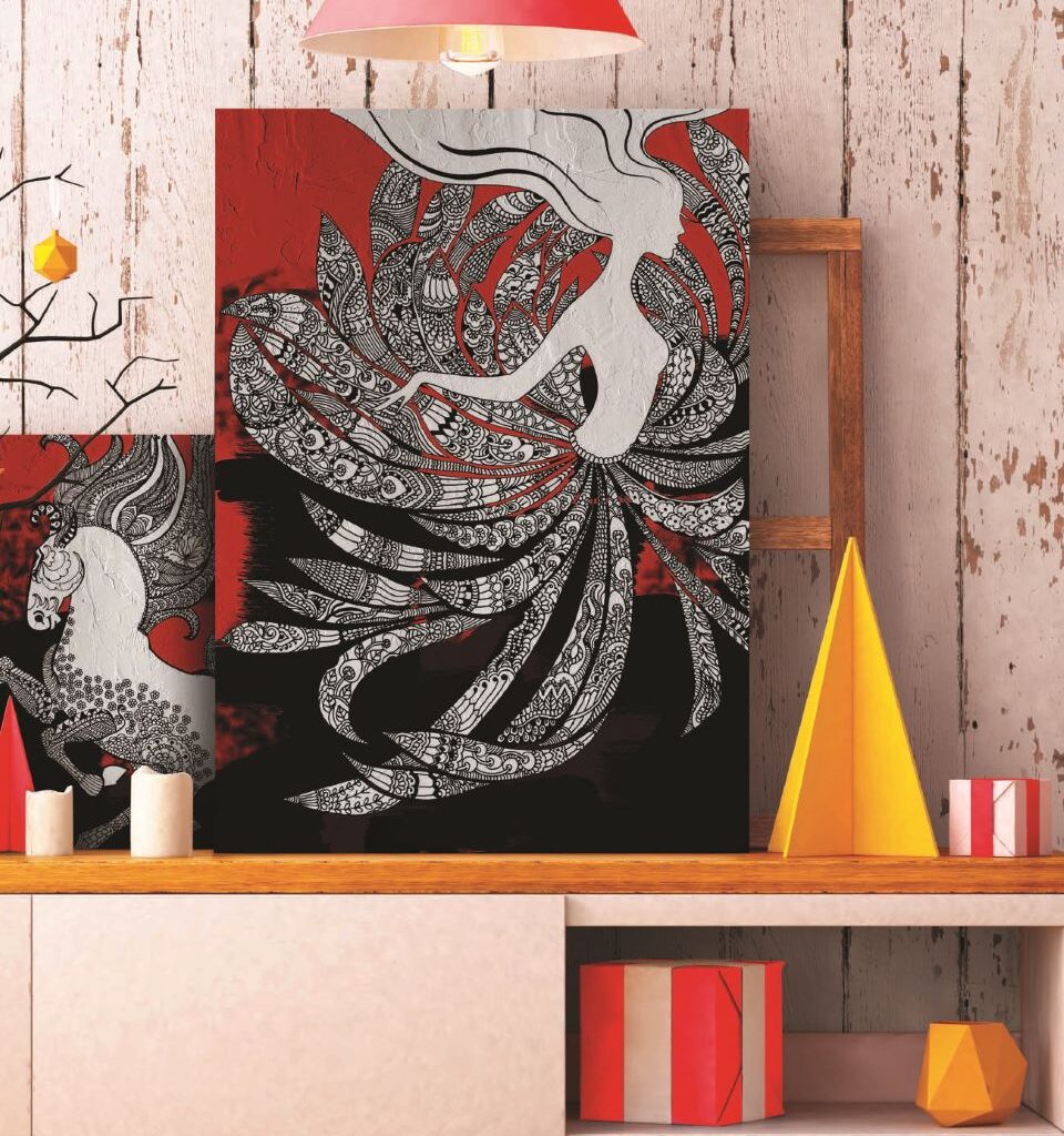 Momenti’s paintings, or artistic prints are made on five different materials: aluminium panel; polymethyl methacrylate plastic material that is similar to optical fibre in quality and transparency; canvas panel, which is in aluminium alloy, externally covered with fiberglass fabric and vintage effect matte resin finish; Alveolar Eco Panel, which is 100 per cent recycled and recyclable cellulose panel; and sound absorbing panel in MDF structure, coated externally with acoustic polyester.