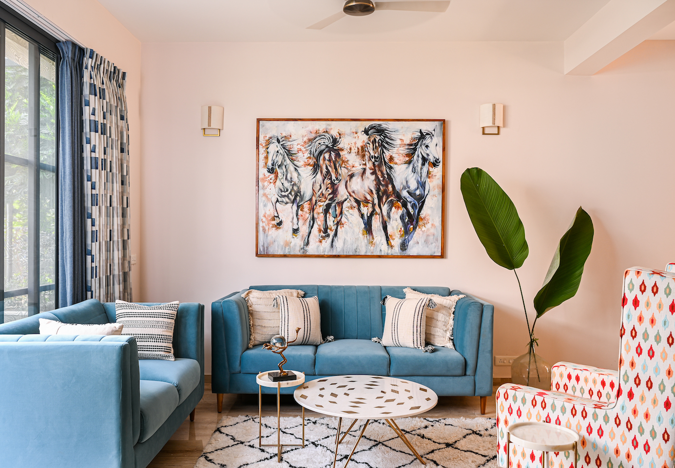 This particular home was designed by By The Riverside for the family of a seafarer. While Arul, the man of the house, remains at sea honouring his merchant navy officer duties, Puja, his wife, travels for her passion and their 18-year-old daughter is away, studying design. Three years ago, when the duo finally bought their dream home, they rang up Swati Seeran, founder, By the Riverside, whose aesthetic sensibilities had resonated with them deeply. They believed she was the one who could balance Puja’s flamboyance with Arul’s affinity for subtler musings in the new home.