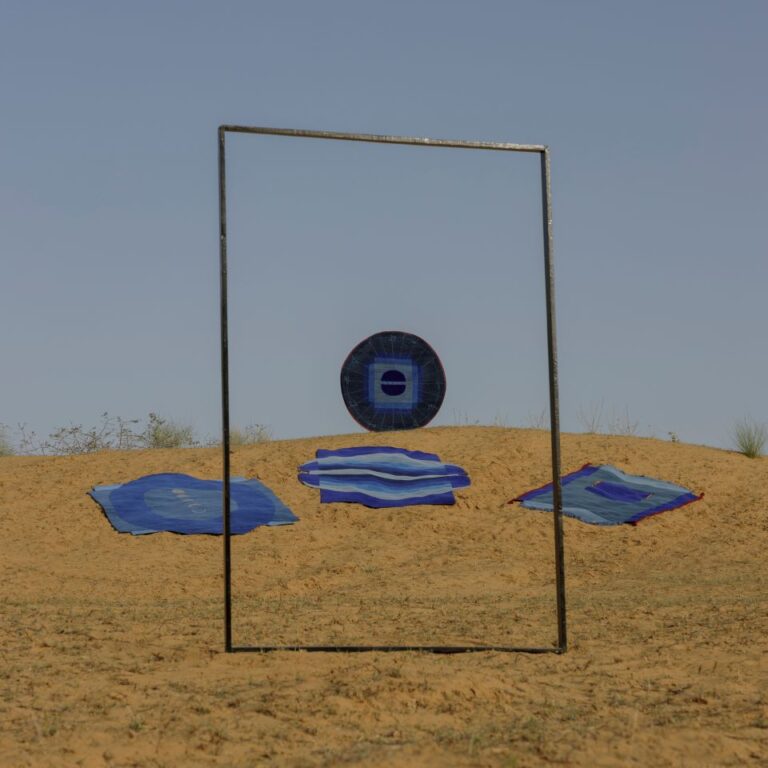 The forms of the rugs are organic and draw inspiration from the ancient geometry of India, the cosmos, and the architecture of the Jantar Mantar. Titled Nakshatra, Manthan, Dwaar and Chanda, a fine concoction of various celestial elements, this collection through its depth, proportions and gradation serves as a mirror, bringing the universe to your feet. In hues of indigo, Dwaar exemplifies the essence of the cosmos, while Chanda is a tribute to the ephemeral beauty and fluidity of the moon. It truly encapsulates the phases of the moon in the radiant night sky. Hand-knotted and detailed with intricate zardozi embroidery, Chanda features soft silhouettes and curvy outlines.