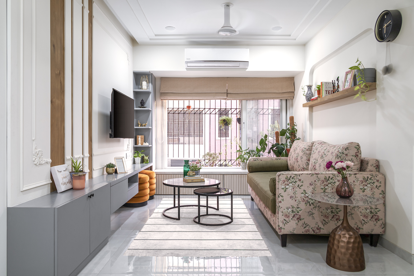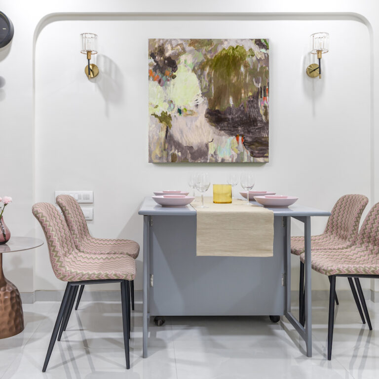 The design team felt that neoclassical decor would do justice to the project that combined the modern with the vintage and bring in the element of luxury where required. “We wanted it to be chic and poised and used decorative motifs and shapes to show that in design,” says the duo. “We wanted to lean more on the clean lines and minimal philosophy but reserved places that would add that vintage charm. As the client is a plant-lover we wanted to display the foliage in every area.”
