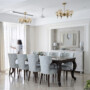 The art throughout the home adds not only warmth, but soul too. A neutral colour palette renders a warm and cosy interior. This intimate scheme is balanced with natural teakwood finish and baby blue fabrics. The furniture is in minimal classical style and upholstered in neutral colour tones. The subtlety of the architectural finishes allows the furniture to take centrestage.  The guest and master bedroom also follow the same design style, while the other two bedrooms (children’s spaces) incorporate a bit of bold colours like dark grey and blue. The accessories used in the interior are collected by the client from across the world from their travels.