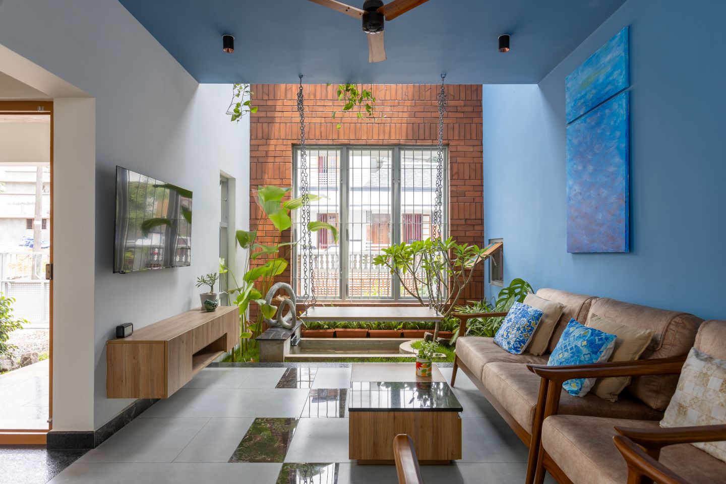 This Kochi home features an impressive courtyard