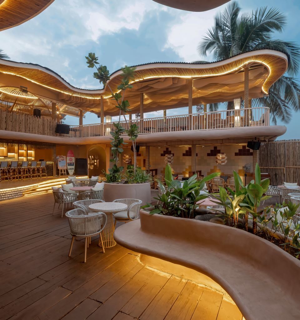 The brief expected the design team led by architects Koushik BR and Priyanka MC, to design a space which enhance the experience of watching sunsets from a casual and beautiful space. The layout had to be designed in a way where everyone would get a view of the sunset, and the place should be able to convert into a high energy club post sunset. Additionally, dedicated spaces had to be provided for all the services.