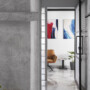 To encapsulate the overall visual direction where colour and material directions are concerned, this office was all about whites, greys and black with a mix of glass to make the space look lighter. “The use of different glass surfaces in partition screens and marble in different colour schemes are the show-stopping elements of the space,” opines Jeet. In fact, the use of marble in a manner where it grew into the space gradually to transition from the floor to become table/countertops and then going onto the walls to accent the space with its texture and material tactility, was something that excited him greatly about the project.