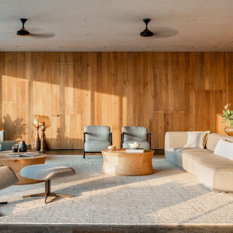 Cave House, the latest project by Design Work Group, is a five-bedroom apartment located on the 14th floor of a premium residential tower in Surat. The client’s brief was simple: a minimally designed space with a meditative atmosphere.