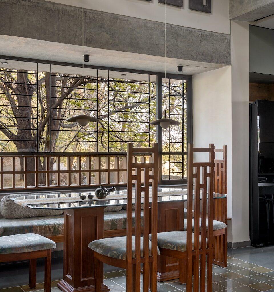 In designing their own home and studio, the architects took the liberty to experiment and innovate, creating spaces at different levels and using materials that breathe, like natural Indian stones and wooden windows. The studio space serves as a tranquil pavilion where the architects can immerse themselves in their work, surrounded by the sights and sounds of nature.
