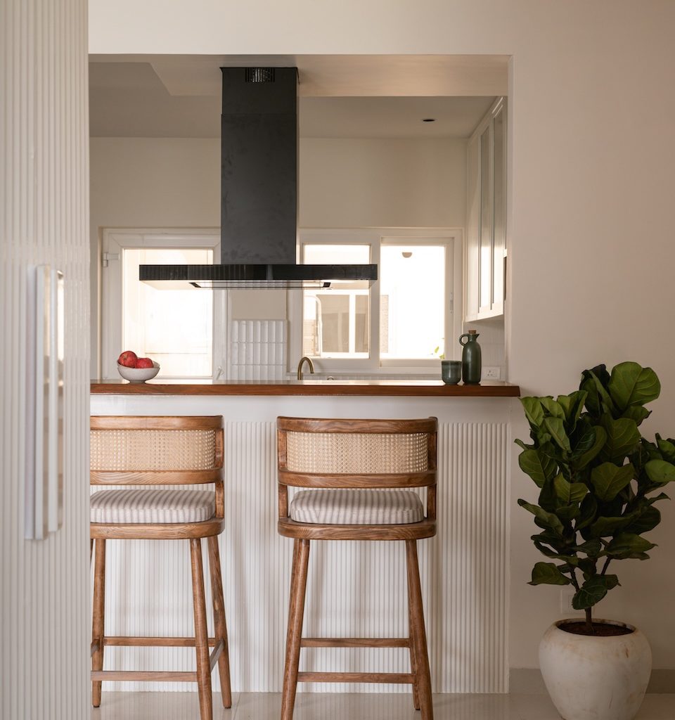 Helmed by principal designers Muktha Prabhu and Rashmi Soni of Salmon Pink & Co., the home was imagined as a balance between modernity and memory. “The idea was to reflect nature’s transitions—the calm, the colour, and the celebration of everyday beauty,” say the designers. The design language merges modern silhouettes with nostalgic warmth, drawing inspiration from the family’s multi-generational values and the fluid hues of dusk.
