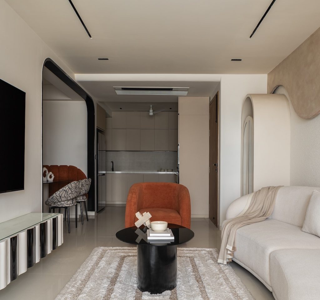Organic Silence is a 1,180 sq ft 3BHK residence in Pune shaped as an ode to minimalist organic luxury. The home’s expression rests on fluid lines, muted tones and layered textures that soften the discipline of contemporary minimalism. Every gesture — from curved walls to sculptural elements — is calibrated to create an atmosphere of calm, spaciousness and quiet refinement. The design draws from nature’s delicate forms, resulting in a sanctuary that feels restrained yet sensorially rich.