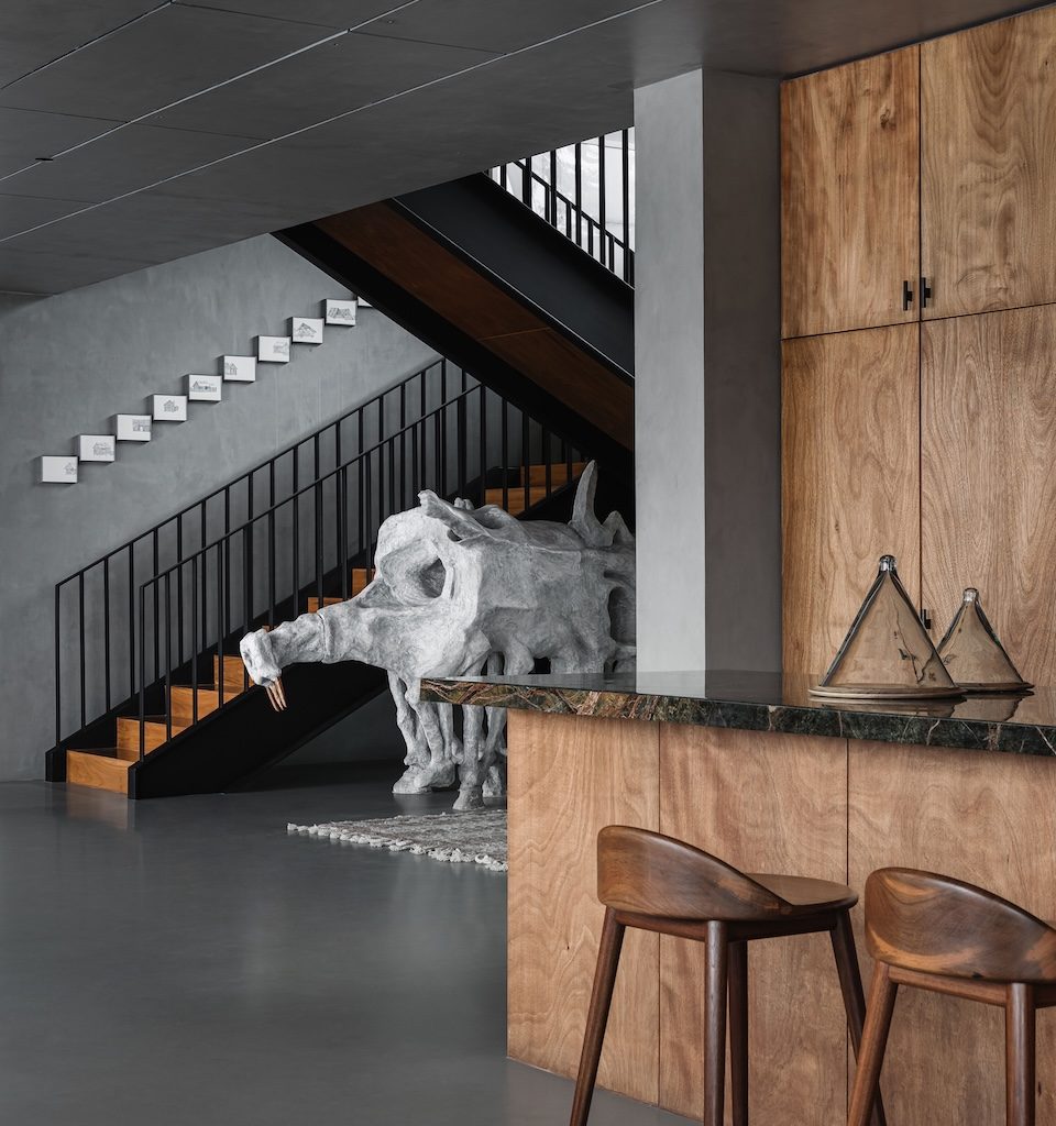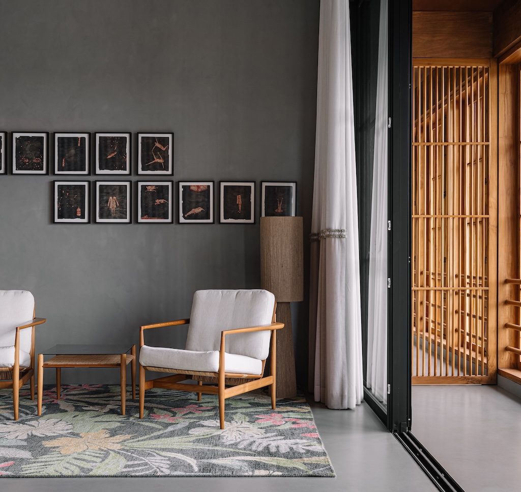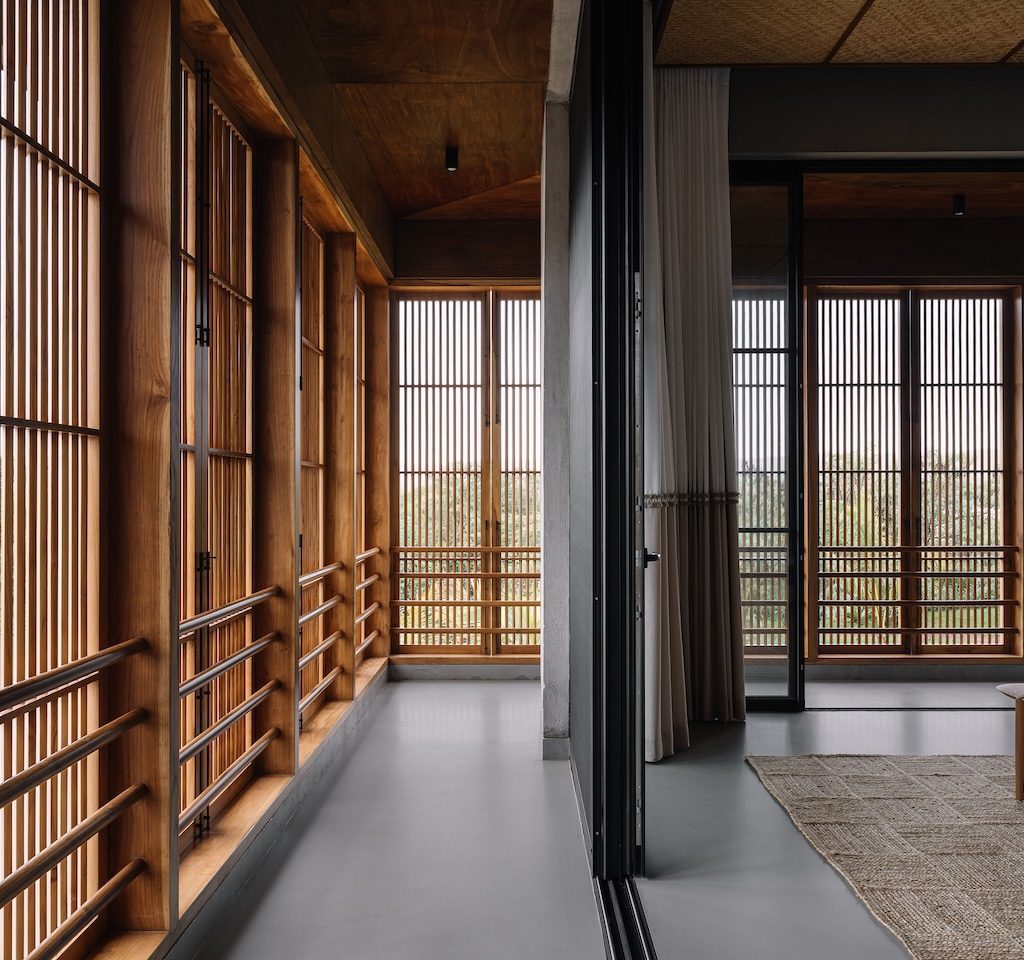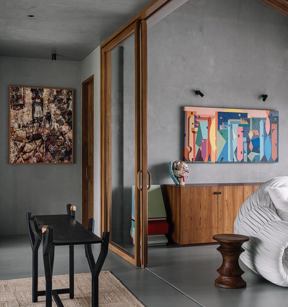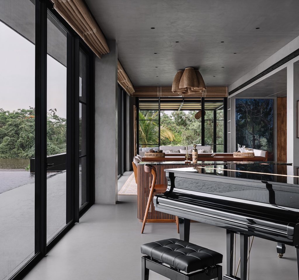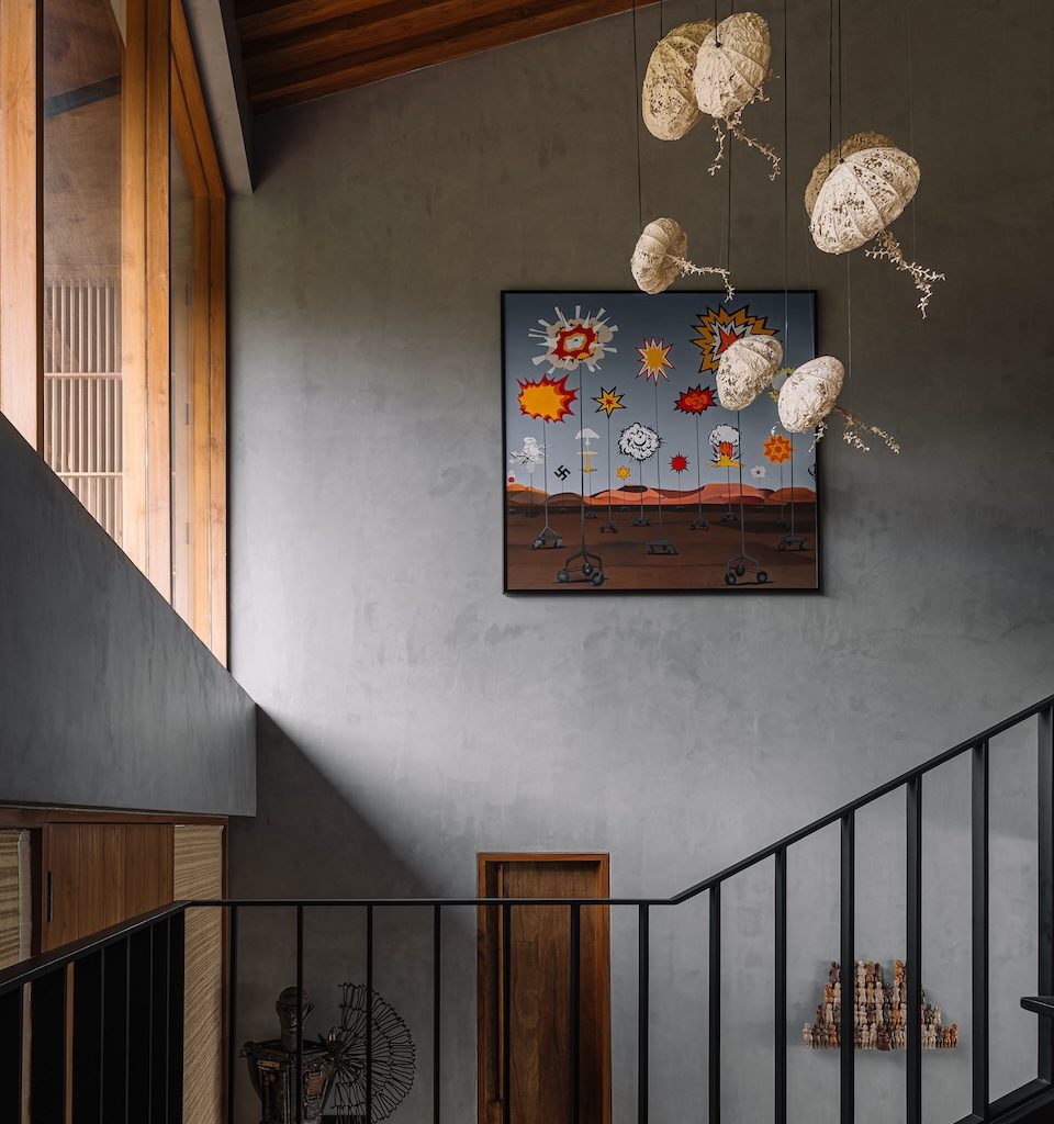 The commitment to place is further reinforced through the project’s completely indigenous approach, where every construction material, fitting and piece of furniture has been sourced locally. Outdoors, a greenhouse for organic farming, a fishing deck and an outdoor gym crafted from recycled wood continue this ethos of ecological sensitivity and integrated living. Within the home, the client’s decades long art collection introduces cultural warmth and personal meaning.