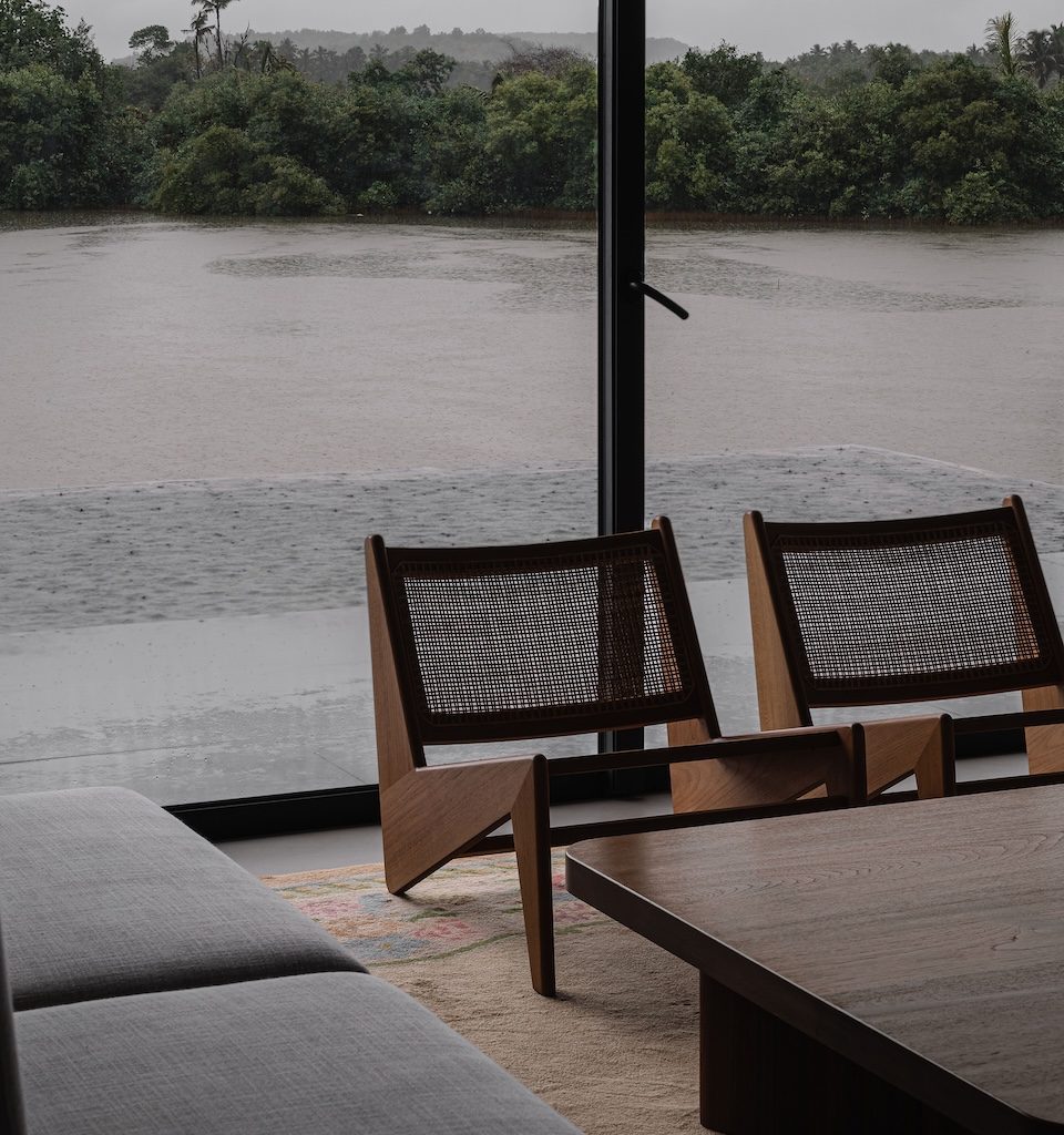 Salt Pan House appears in the landscape almost as if it has been carved out of the elements themselves. Framed by a salt pan on one side and the Chapora River on the other, the structure seems to rise from water, wind and coastal light. It is within this powerful setting that We Design Studio shaped this 6,000 sq ft villa in Agarvado, Goa, approaching the project with a clarity that strips architecture down to its purest expression. Rather than impose form, the studio allowed climate, material and landscape to lead, creating a residence where the natural forces take on the role of storytellers. The house becomes a silent mediator between land and water, grounded in its place yet deeply responsive to the world around it.