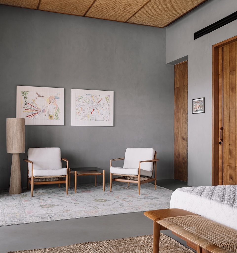 Functionally, the villa had to support two scales of living. It needed the capacity to host large gatherings while remaining intimate and comfortable for everyday life. The programme included indoor and outdoor living areas, a pool, wellness spaces, guest suites and spaces for recreation, each one designed to open out to the landscape in a meaningful way. Aesthetically, the brief called for a home grounded in indigenous craft and a visual language that felt timeless, allowing the architecture to sit lightly within its expansive natural context.