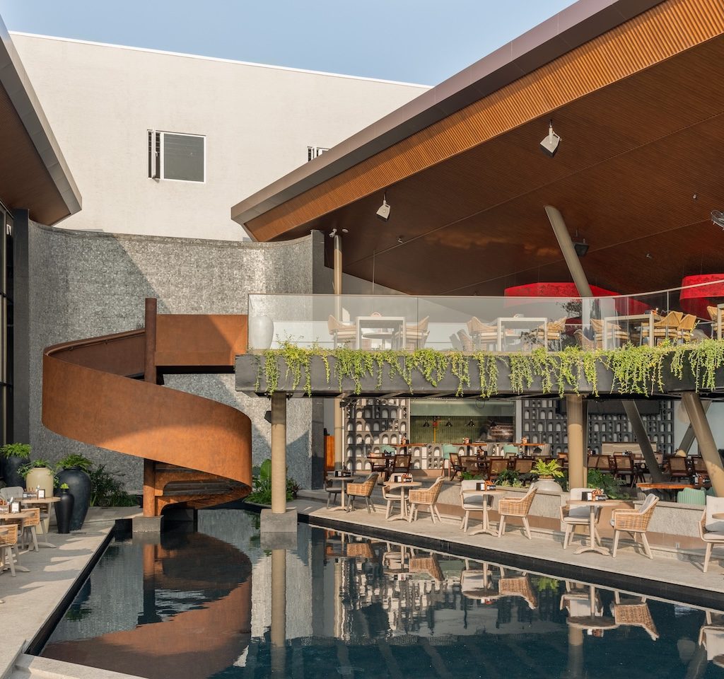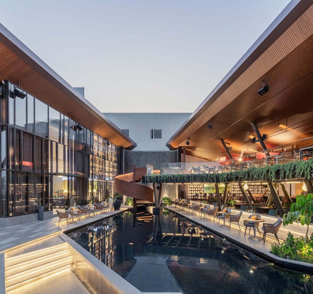 In Coimbatore, Ksquare Architects creates a 31,529 sq ft restobar defined by bold roof planes, reflective pools and seamless indoor–outdoor transitions that elevate the social experience.
