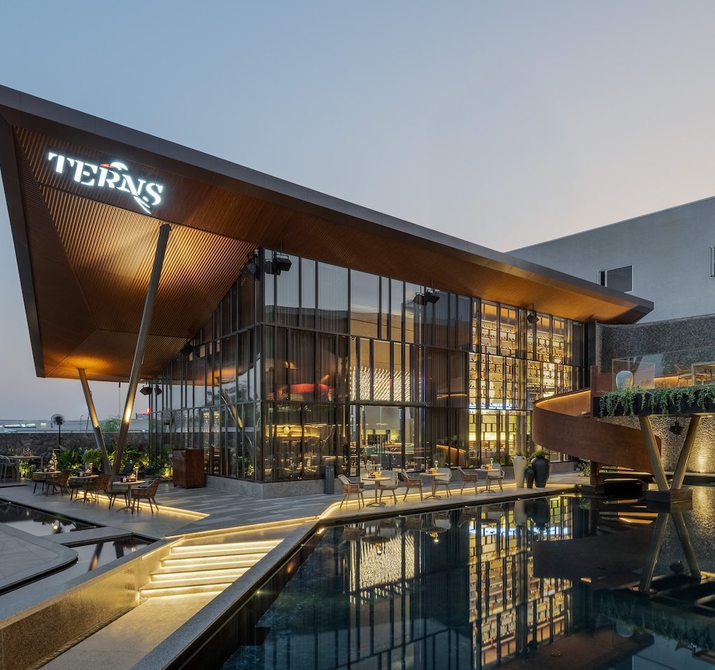 Terns is envisioned as a contemporary restobar where architecture and atmosphere work in tandem to create an immersive social setting. Designed by Ksquare Architects, the project brings together expressive roof forms, water, landscape and carefully choreographed spatial openness. The result is an environment that feels simultaneously sophisticated and relaxed—a destination built around leisure, movement and visual connection.