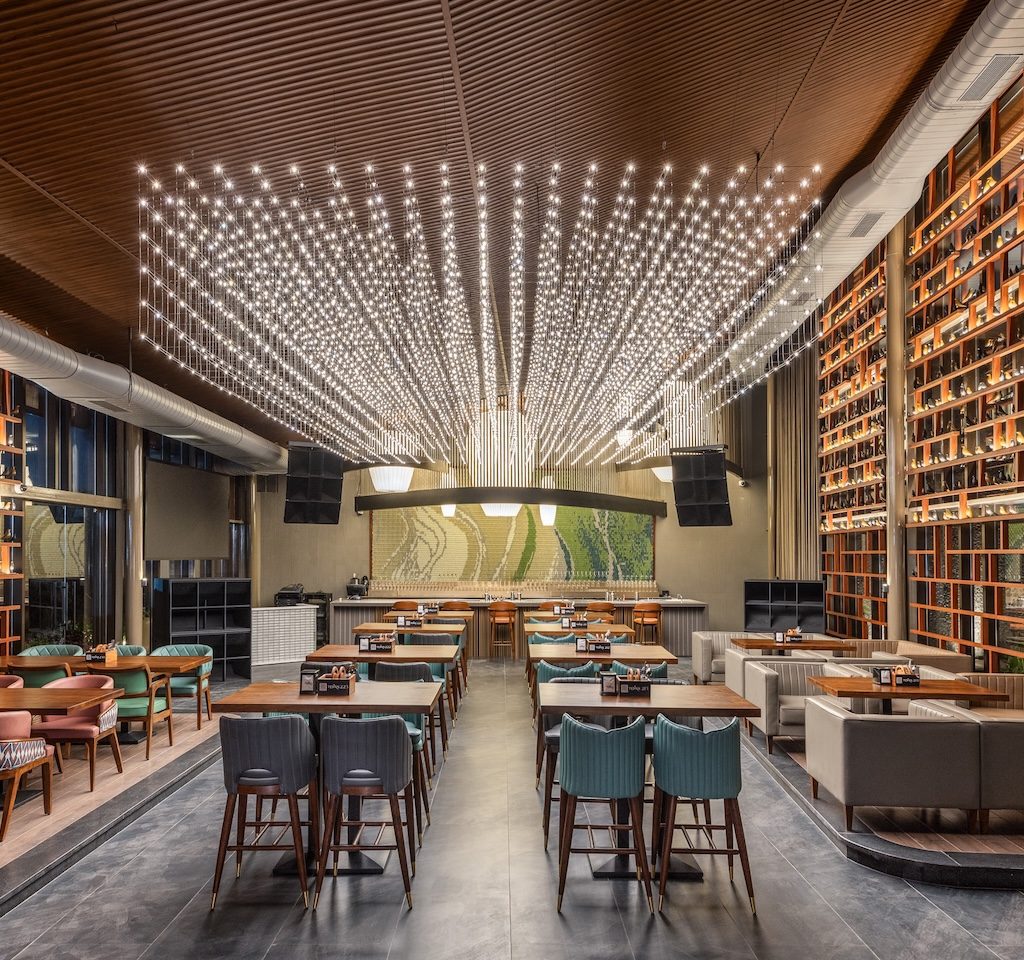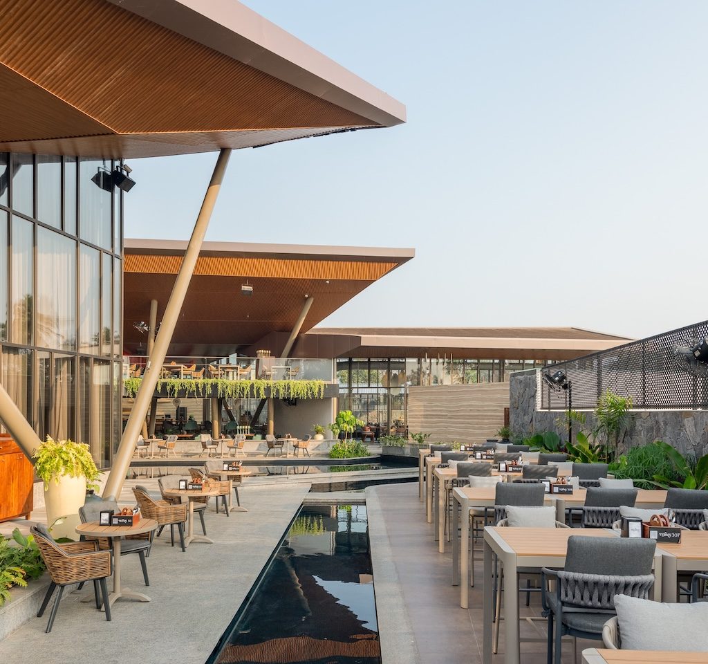 The central reflective pool is the project’s defining gesture, mirroring architecture and lighting while enhancing the microclimate. Indoor–outdoor transitions unfold effortlessly through glass, level changes and landscape integration, ensuring every seating zone maintains a relationship with nature.