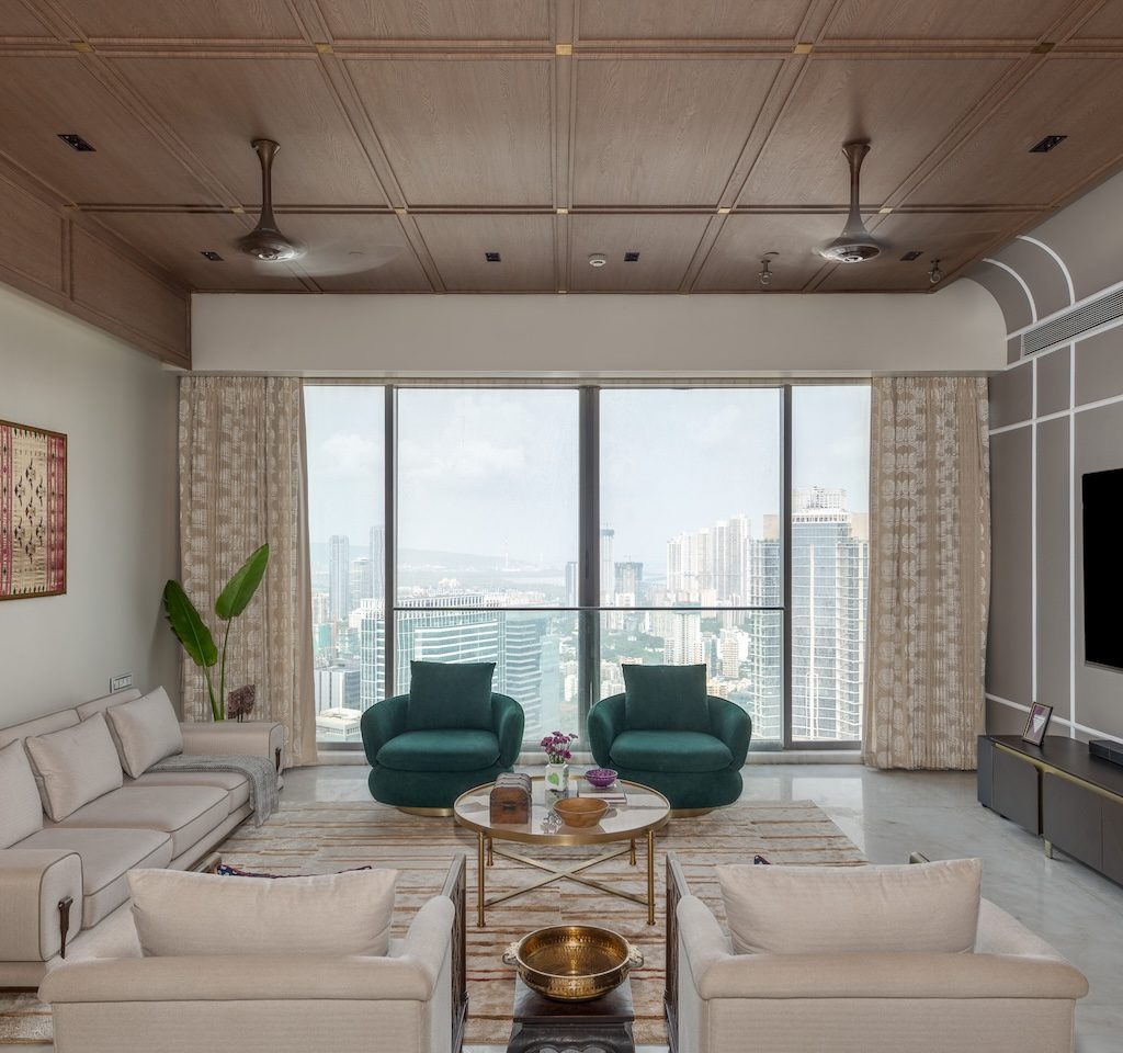 This 1,900 sq ft private residence at Rustomjee Crown, Mumbai, designed by Ishaay Interiors, is a layered home for a three-generation family—one that balances contemporary living with deeply rooted cultural memory. Rather than leaning into overt luxury, the project explores restraint, warmth, and storytelling, shaping a space that feels personal, lived-in, and quietly expressive.