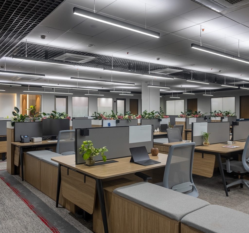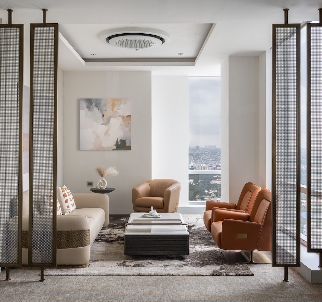 The primary challenge lay in reorganising the spatial layout without altering the extensive existing service infrastructure. Fixed AC lines, speaker placements, and fire-safety systems demanded inventive detailing and precise planning to ensure the new layout felt seamless rather than constrained.