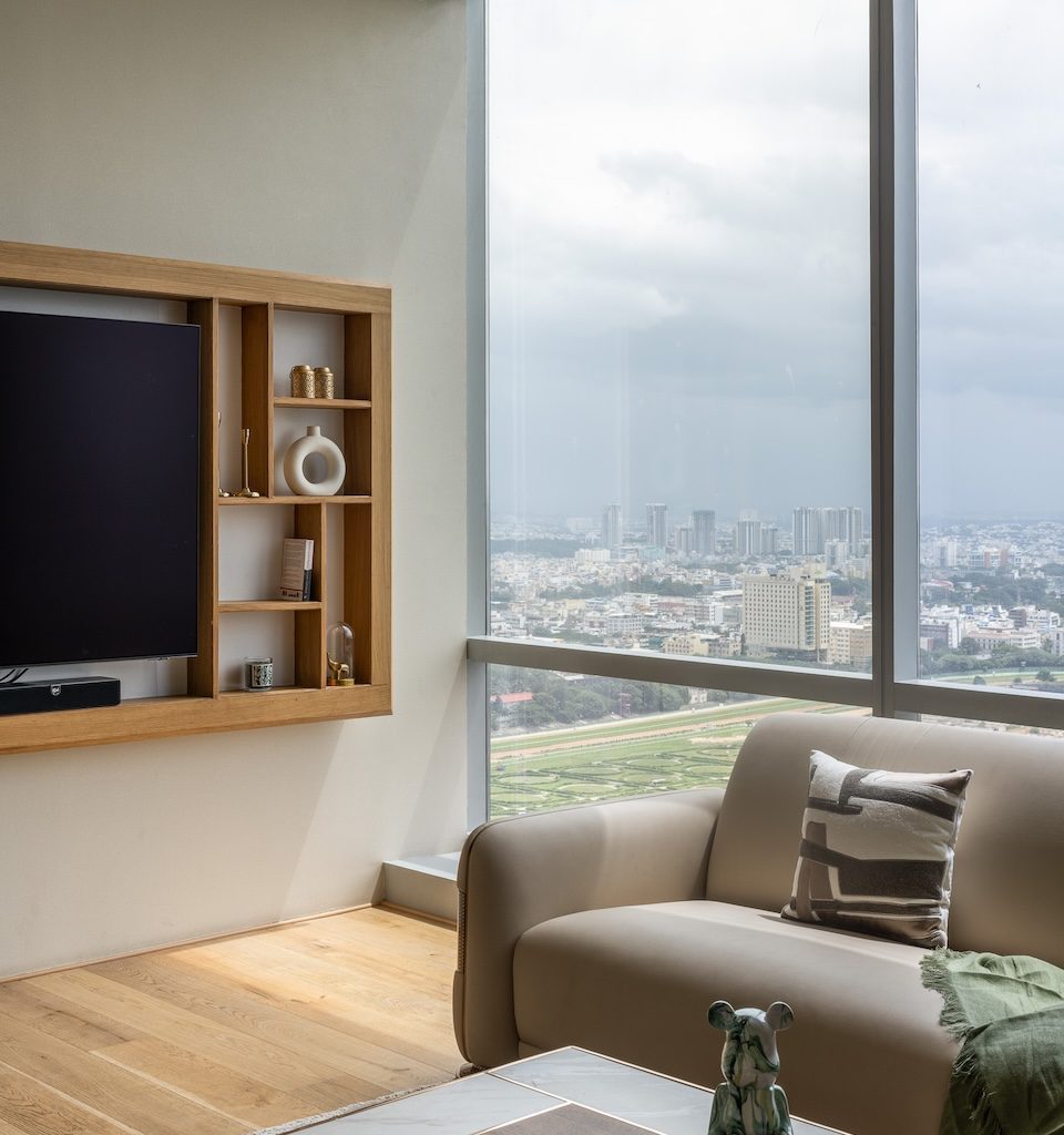 Located on the 23rd floor of Prestige Trade Tower in Bengaluru, the 20,000 sq ft corporate office of KVN Productions has been designed and executed by Turnkey 5.0. Conceived for a film production company, the workspace needed to support confidentiality, focused creative work, and seamless collaboration—without resorting to overt theatricality. Instead, the design adopts a measured, minimal approach, allowing planning, acoustics, and material restraint to define the experience.