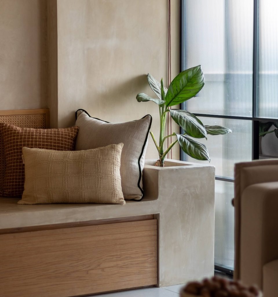 Communicating an unconventional material and design approach to clients without a design background was an early challenge. This was addressed through detailed drawings, mock-ups, and visualisations that clarified intent and built confidence. Executing lime plaster across furniture surfaces also demanded careful construction detailing, including layered assemblies of plywood, gypsum, and plaster to achieve a seamless monolithic effect. Multiple trials were conducted to finalise the exact tone of the plaster, ensuring it delivered the intended warmth and softness.