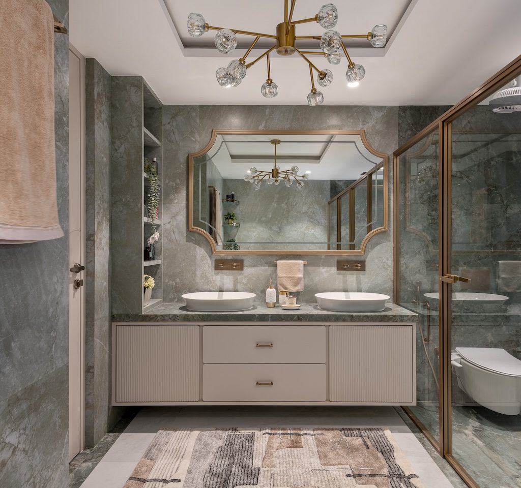 The design language is intentionally restrained yet expressive, allowing moments of surprise to emerge through crafted detail rather than form alone. Simple materials with bold characteristics—such as veneer and stone—anchor the interiors, while bespoke techniques elevate everyday surfaces into storytelling devices. As principal designer Mithila Singh explains: “The intent was to keep the design language simple but impactful, allowing customised techniques and material expressions to narrate personal memories and moments of joy across the home. Functionality and space efficiency form the project’s backbone, ensuring that visual richness never comes at the cost of comfort or usability.”