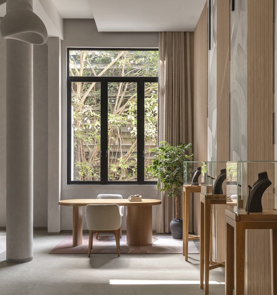 Working within a heritage structure, however, brought its own set of challenges. “The tall ceilings and expansive windows offered a remarkable starting point, but they also introduced structural constraints that required careful planning,” Kumar notes. Achieving the right balance between minimalism and luxury demanded restraint and precision at every stage. “We wanted the space to feel serene and understated, while still carrying the sense of exclusivity that a fine jewellery boutique deserves,” she adds.
