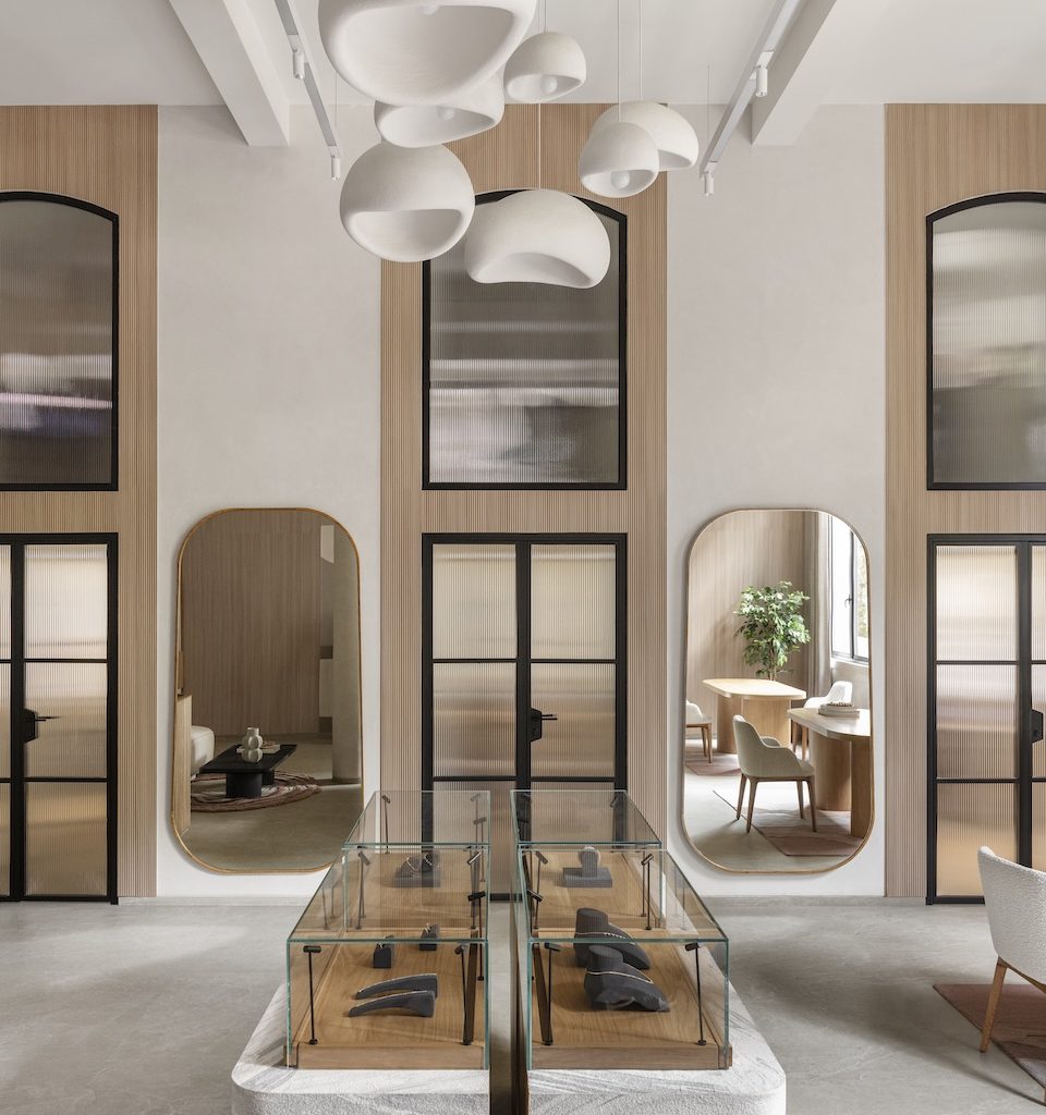 Designing a retail space within a nineteenth-century neoclassical structure demanded a sensitive and measured approach. Drawing on her experience with context-driven projects across India, the Middle East, and London, Aashni approached the brief with deep respect for the existing architecture. “The arched windows and generous proportions guided our design process from the very beginning,” she notes. The resulting space strikes a careful balance between historic reverence and contemporary clarity, where every material choice and spatial proportion feels deliberate and meaningful.