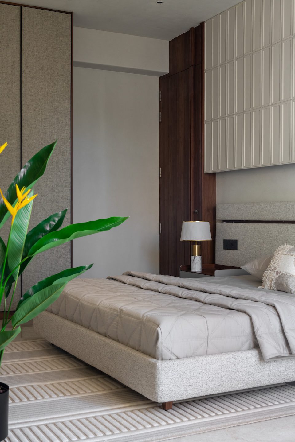 The design intent was to craft a calm, lived-in environment through subtle textures, neutral tones, and natural materials. Rather than rely on overt luxury, the interiors emphasise understated elegance, comfort, and timeless appeal.