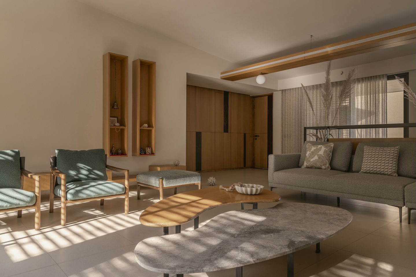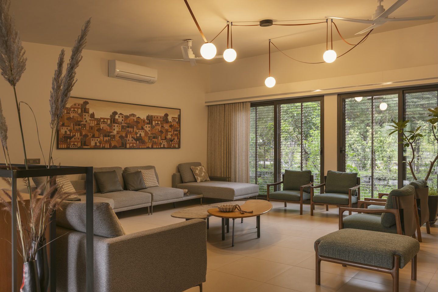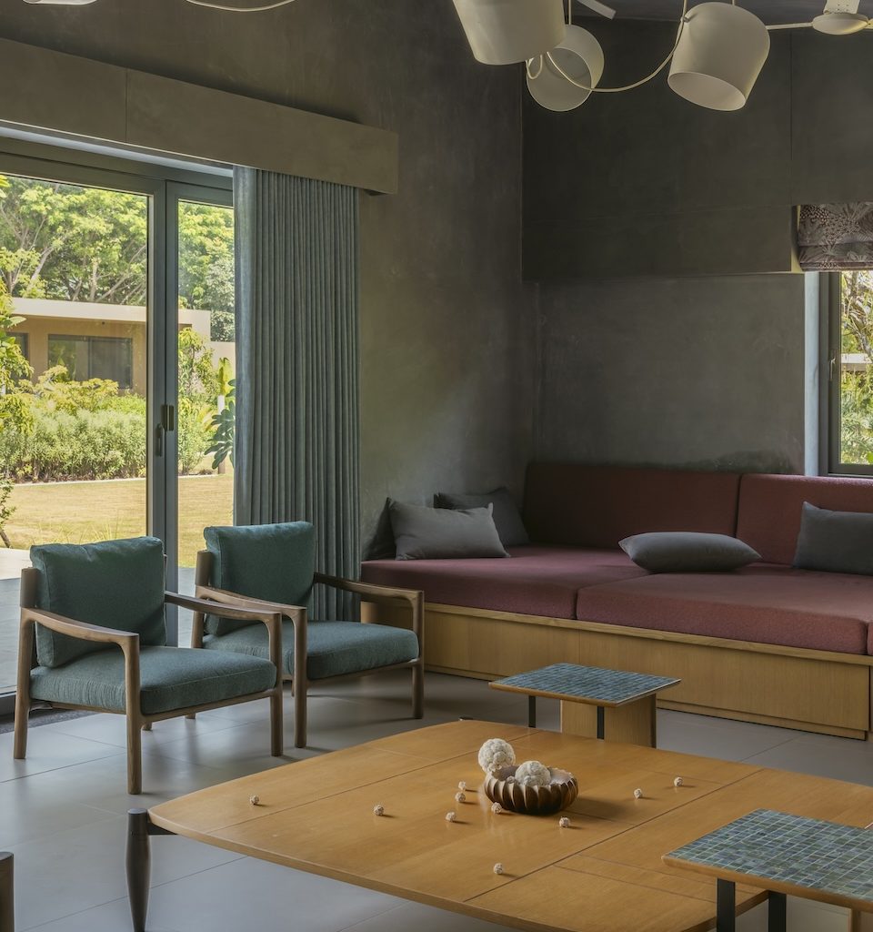 Designed by Salt Studio, this expansive family home on the outskirts of Ahmedabad is conceived as a calm, horizontally grounded retreat where nature, memory, and slow living shape everyday life.